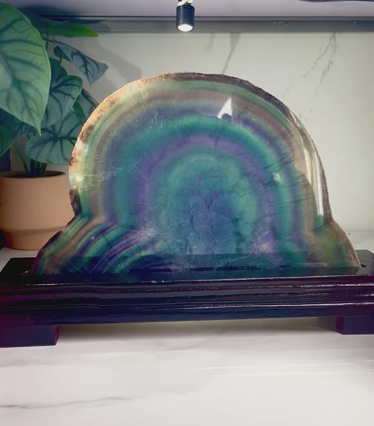 Stunning Botryoidal Rainbow Fluorite Slab Display