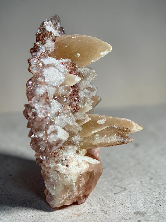 Etched Dogtooth Calcite With Sugar Quartz & Colorful Druzy