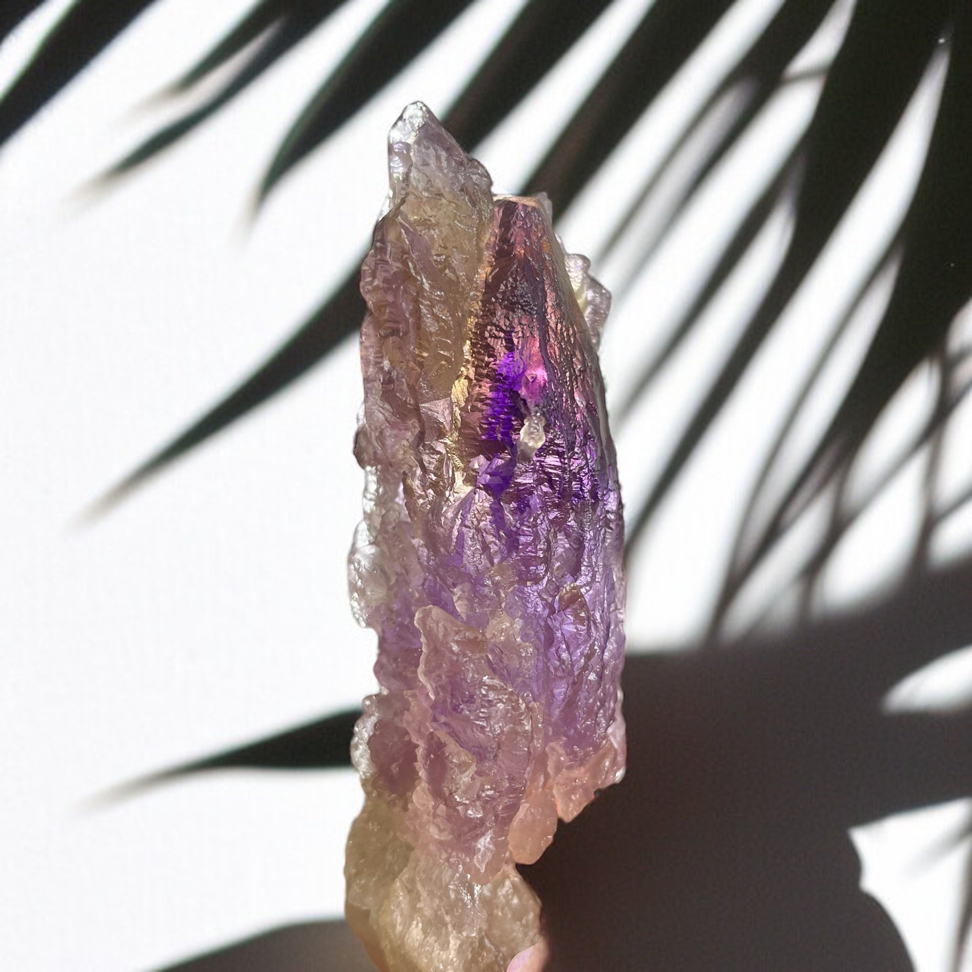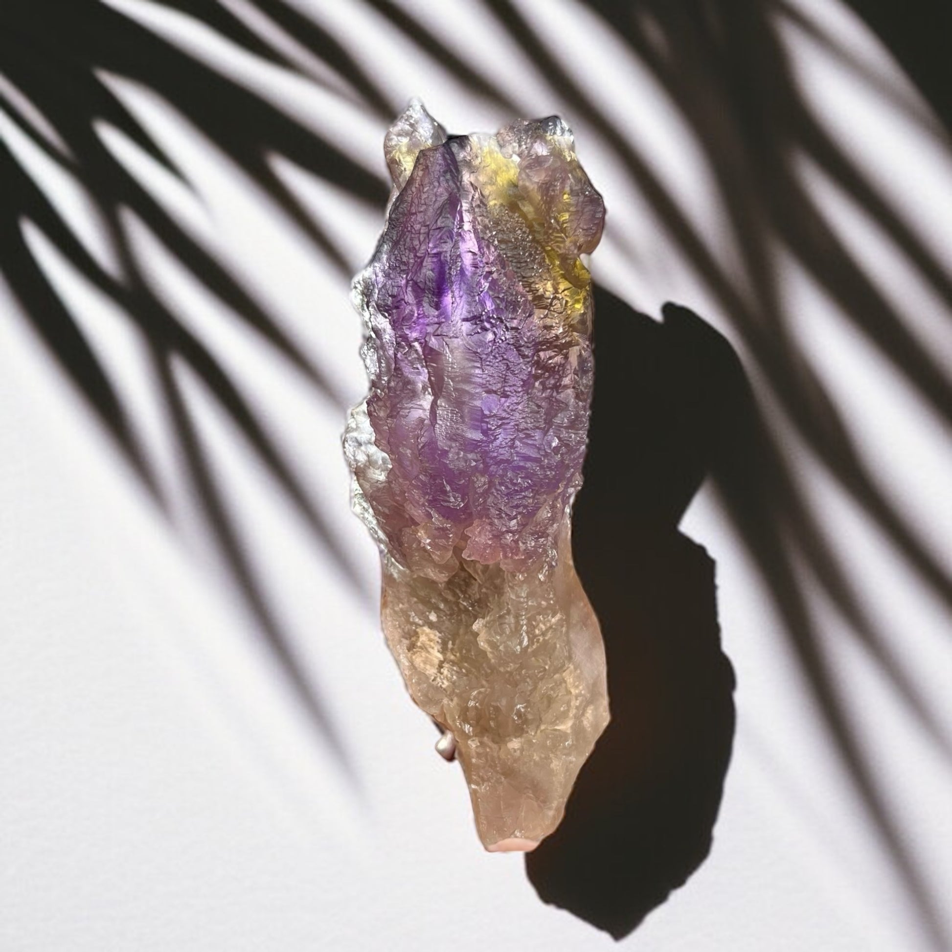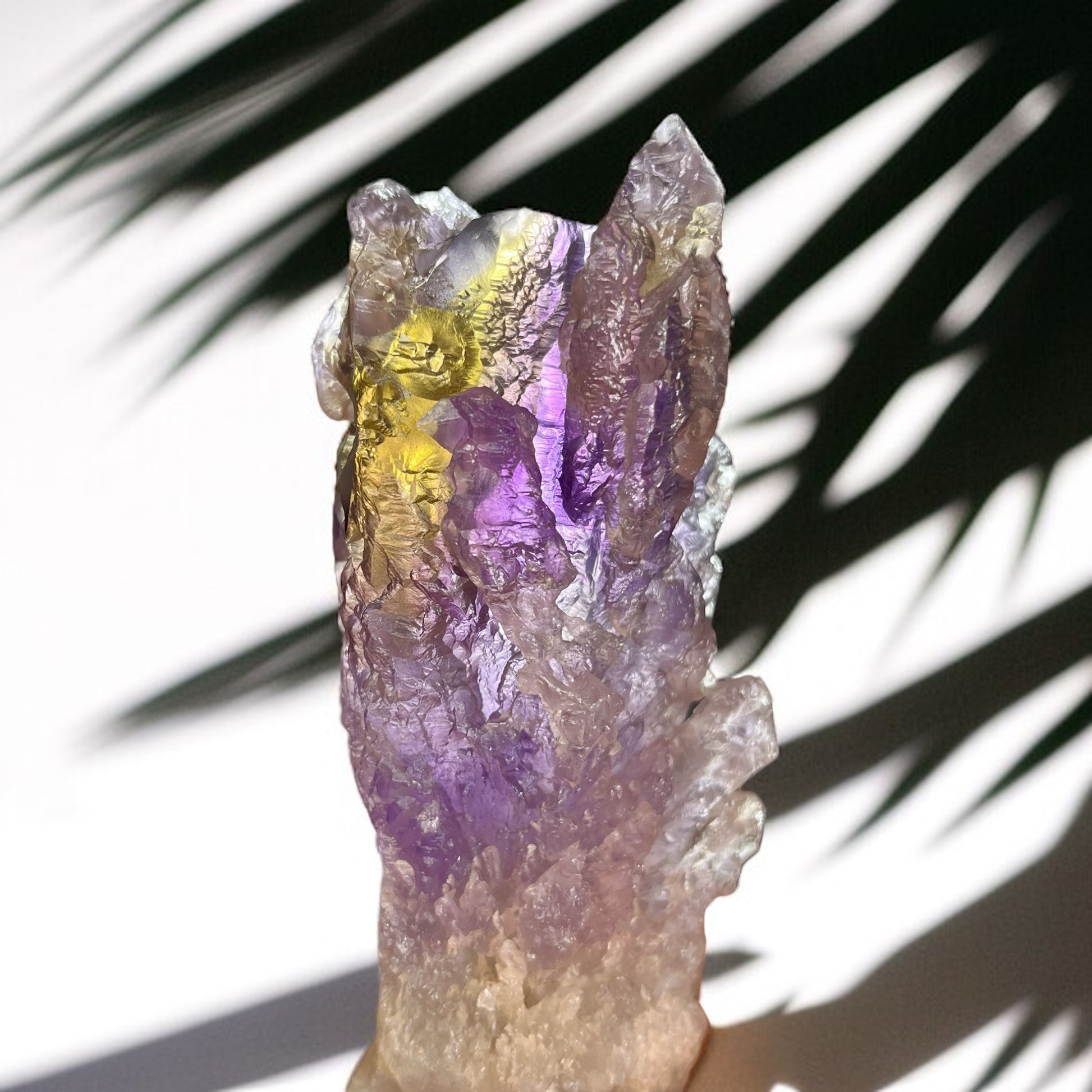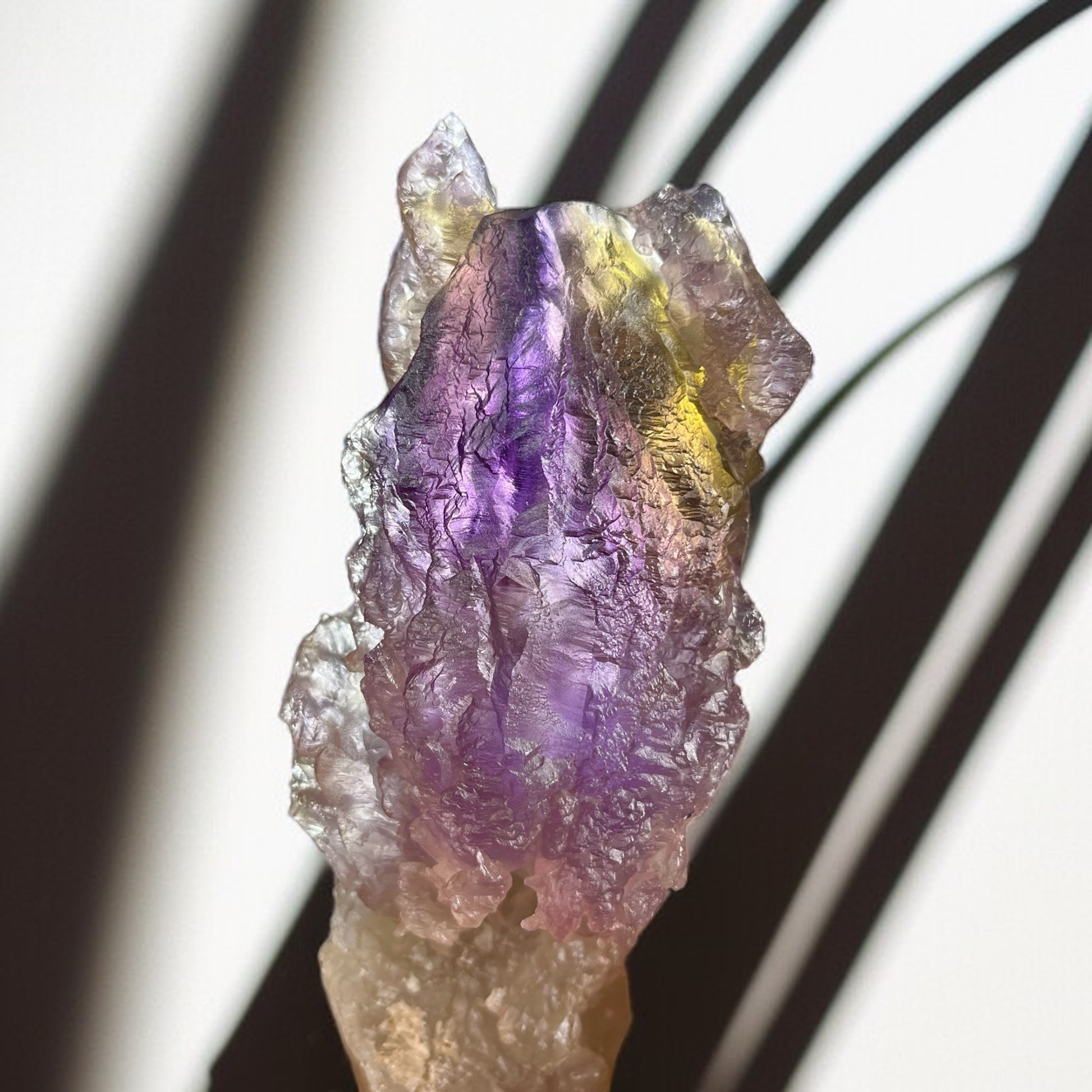These naturally etched specimens are exceptionally uncommon. Most ametrine on the market is either polished smooth or heat-treated to enhance color. This piece? Itβs 100% natural. No cutting. No enhancements. Just pure, natural art.Β