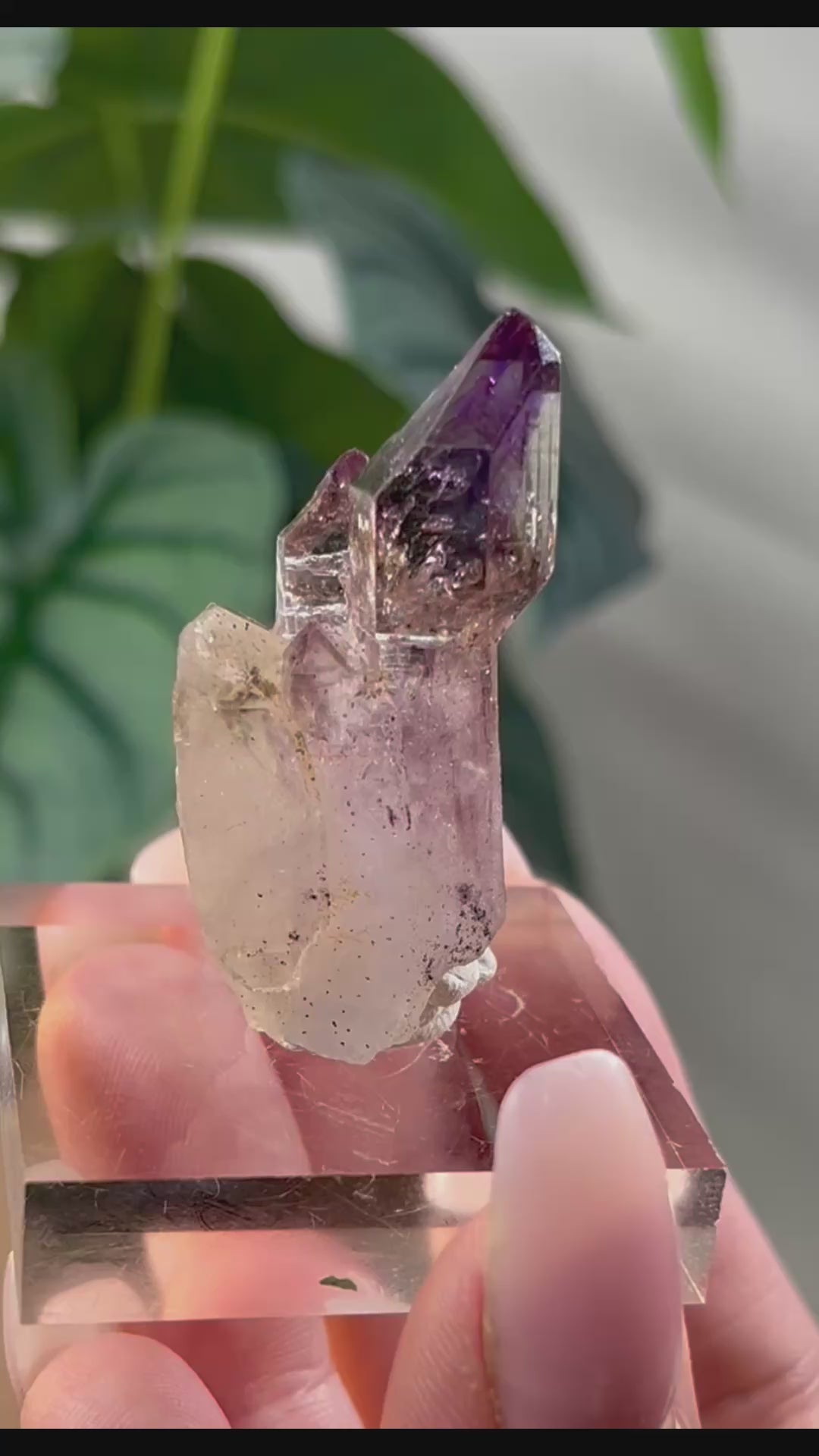 This dreamy Shangaan scepter has everythingβ€”deep amethyst tips, soft smoky body, and a gorgeous scepter formation that feels so regal.Β You’ll spot sparkly red hematite scattered throughout, and it has 2+ enhydros sealed inside.Β