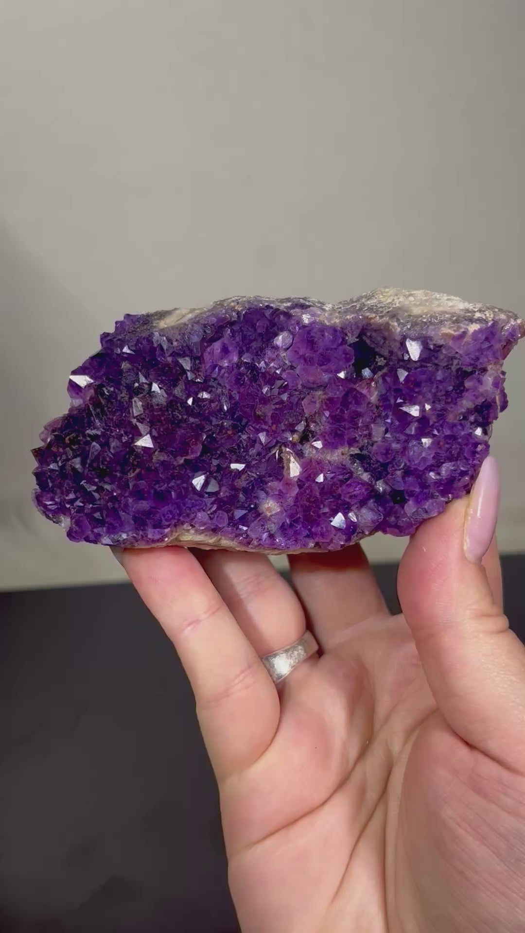 Bright, bold, and full of sparkle. This smaller Thunder Bay cluster radiates with electric purple points and a light dusting of hematite for that subtle coppery shimmer. Itβs vibrant without being overpoweringβperfect for anyone who loves clean color with just a hint of wild edge. A gemmy little piece that lights up in the sun.