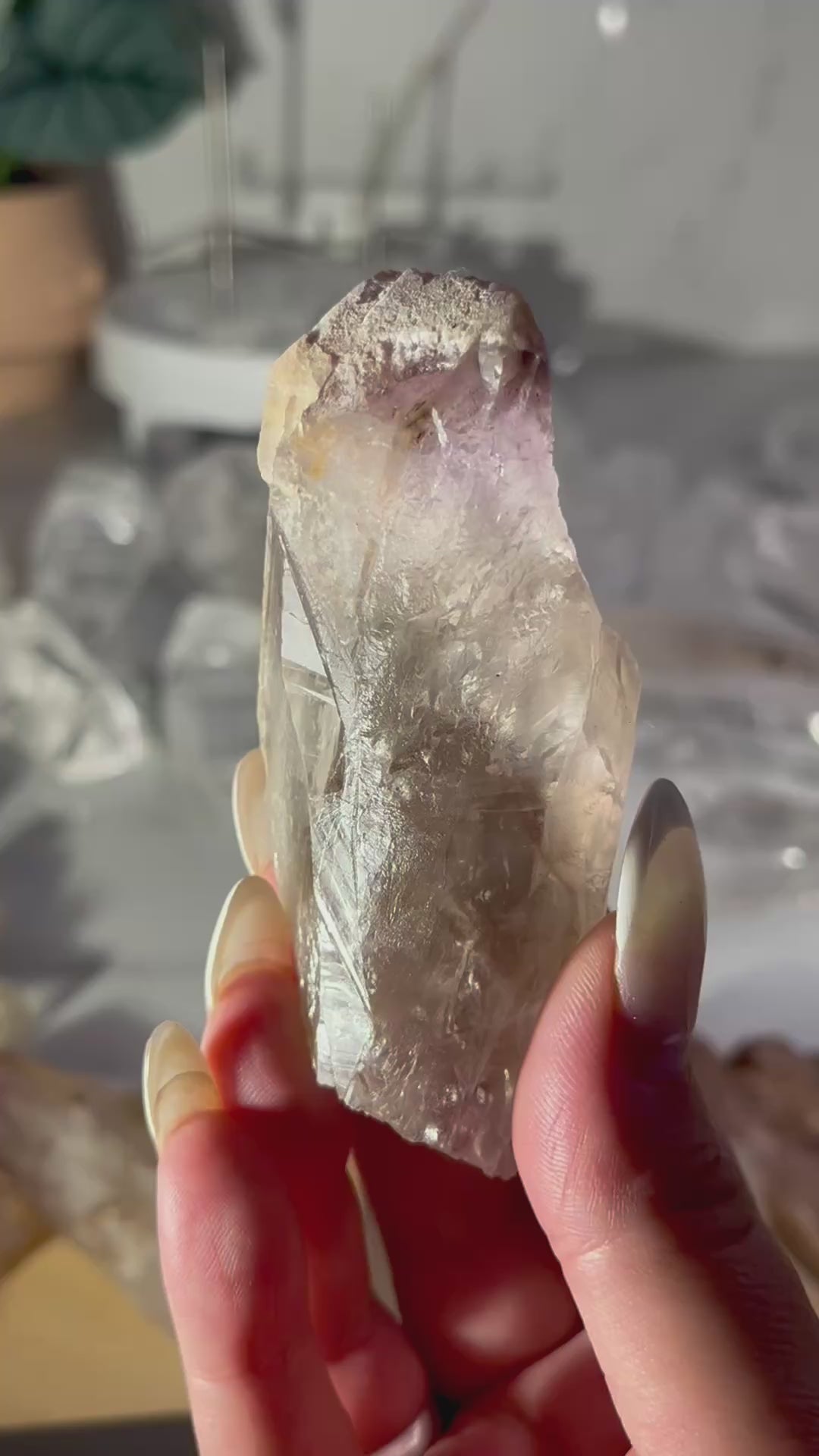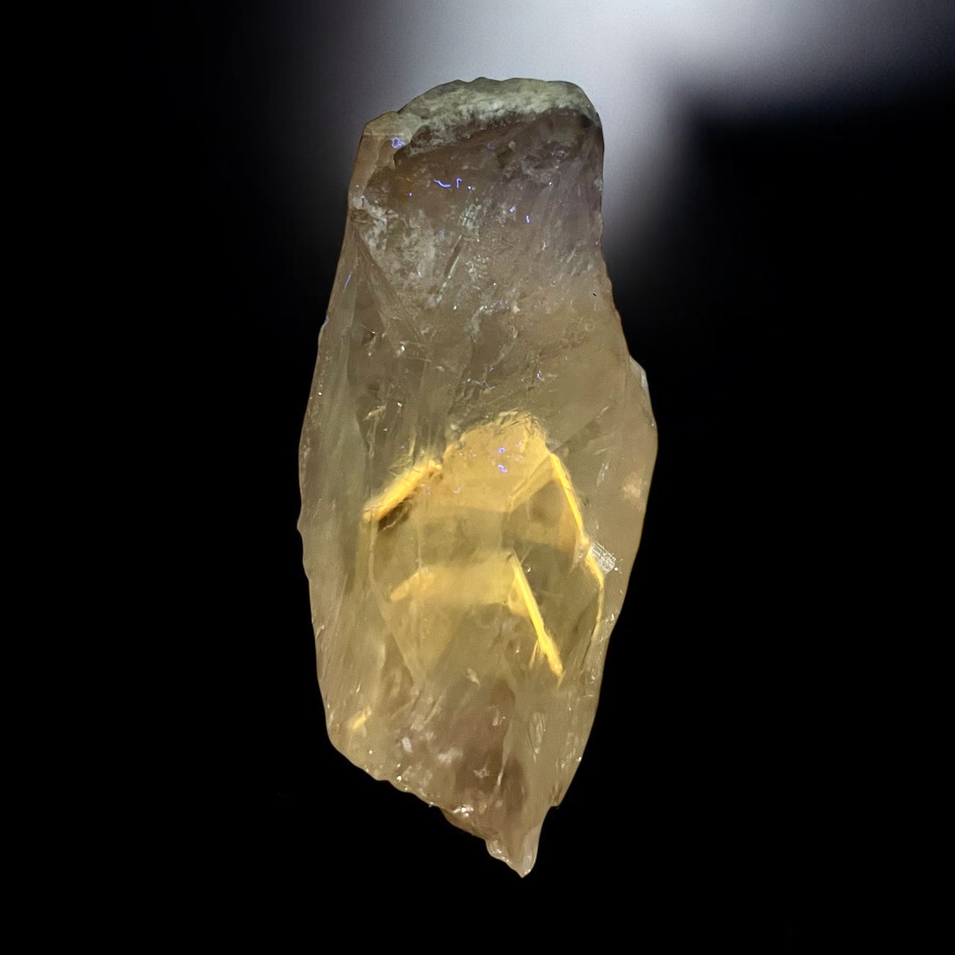 What makes these even more fascinating is their phantom structure. Under normal lighting, you’ll see smoky-brown internal phantoms layered within the quartz. But under UV light, those same phantoms glow bright yellow — an effect strongly associated with powellite. In 2019, lab testing confirmed the presence of powellite in similar material from this locality. However, due to ongoing speculation around newer batches, fresh testing is currently underway. For anyone who purchases from this batch in the meantime, I’ll be sending out an email with the updated lab results as soon as they come in.