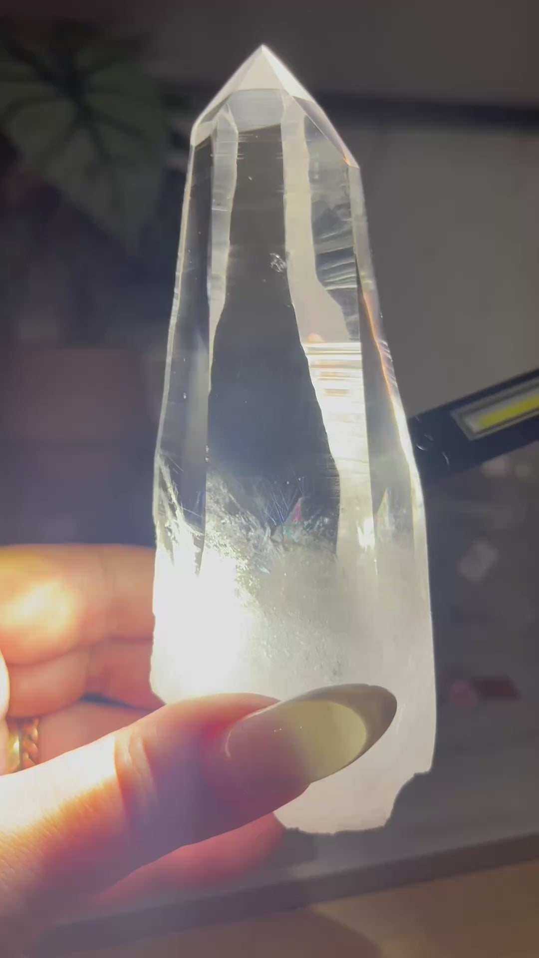 These gorgeous quartz crystals have fine, hair-like blue inclusions that catch the light just right thanks to the Tyndall effect—a completely natural optical phenomenon caused by tiny inclusions scattering light inside the crystal. No dyes, no treatments—just nature showing off.