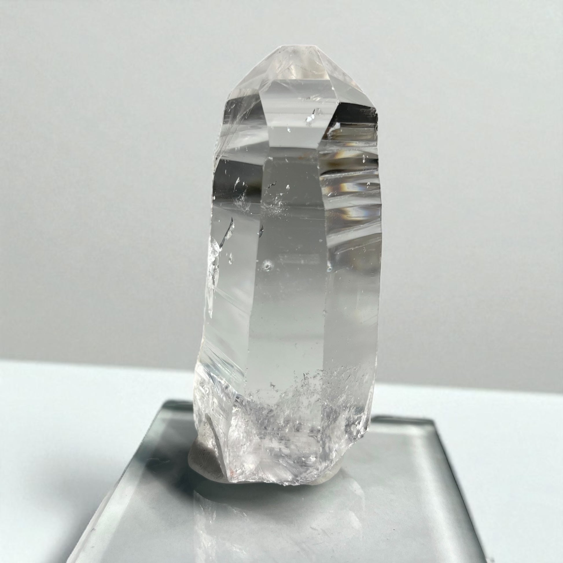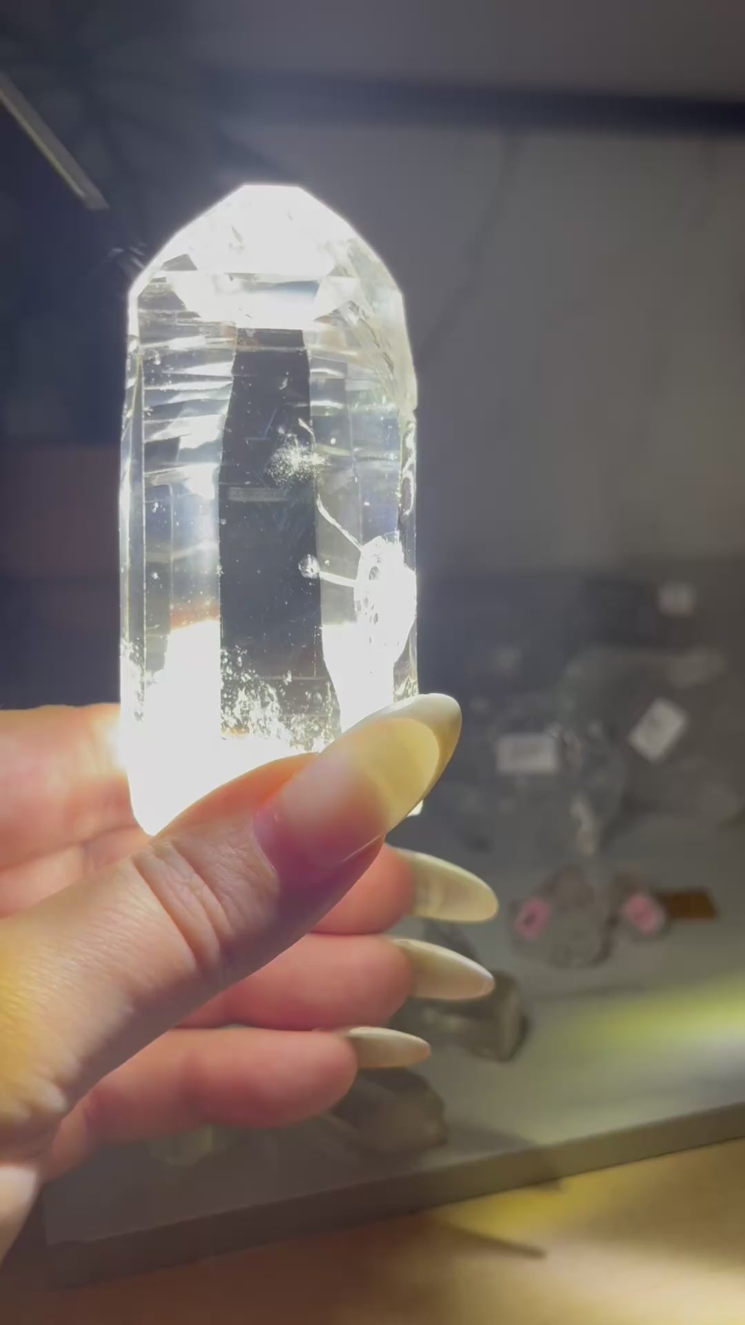 These are not easy to come by—finding clear points with visible blue inclusions takes digging through thousands of crystals—so each one is truly a special find for any serious collector