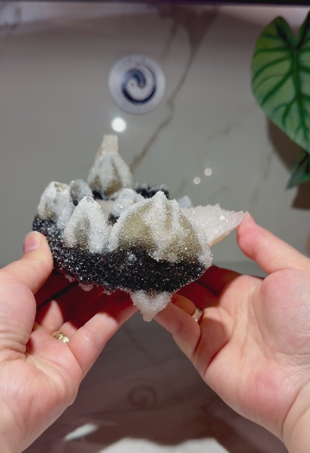 Crowned Hexagonal Calcite with Druzy Quartz & Goethite Strip- Uruguay | River Walkers Minerals