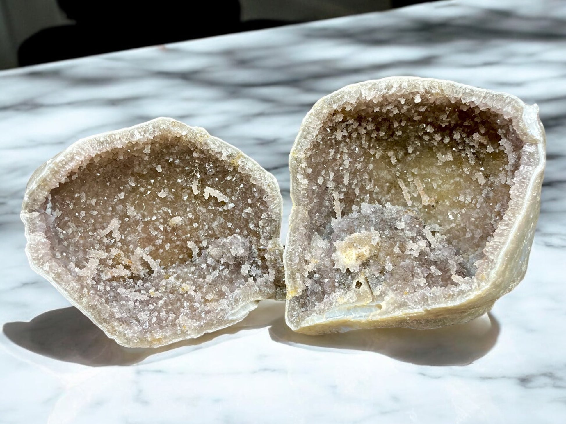 This geode is a glimpse into Earth’s natural artistry, crafted over millions of years. It’s one of those pieces that you can’t help but admire every time you look at it. You will receive both halves as shown in this listing, creating a full geode.