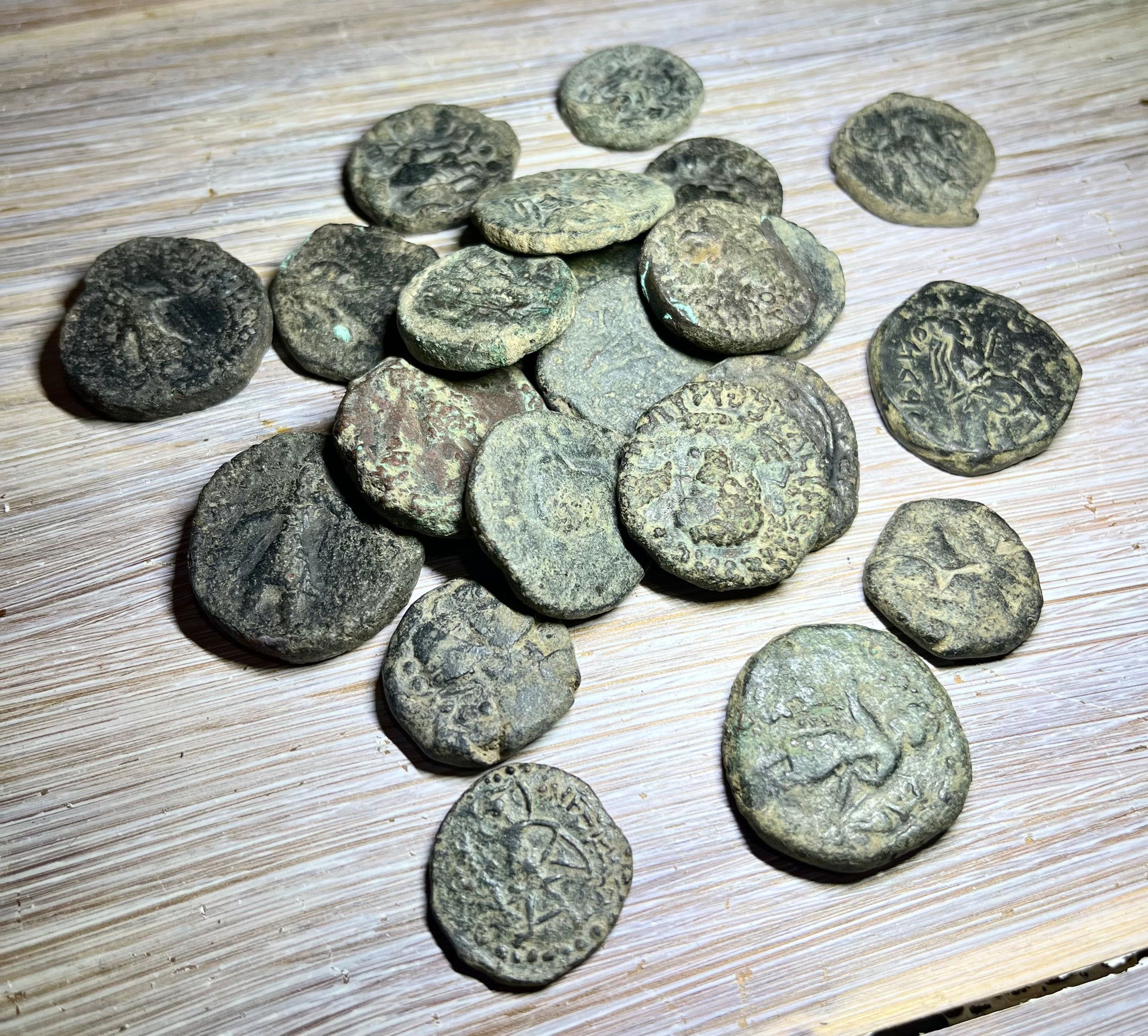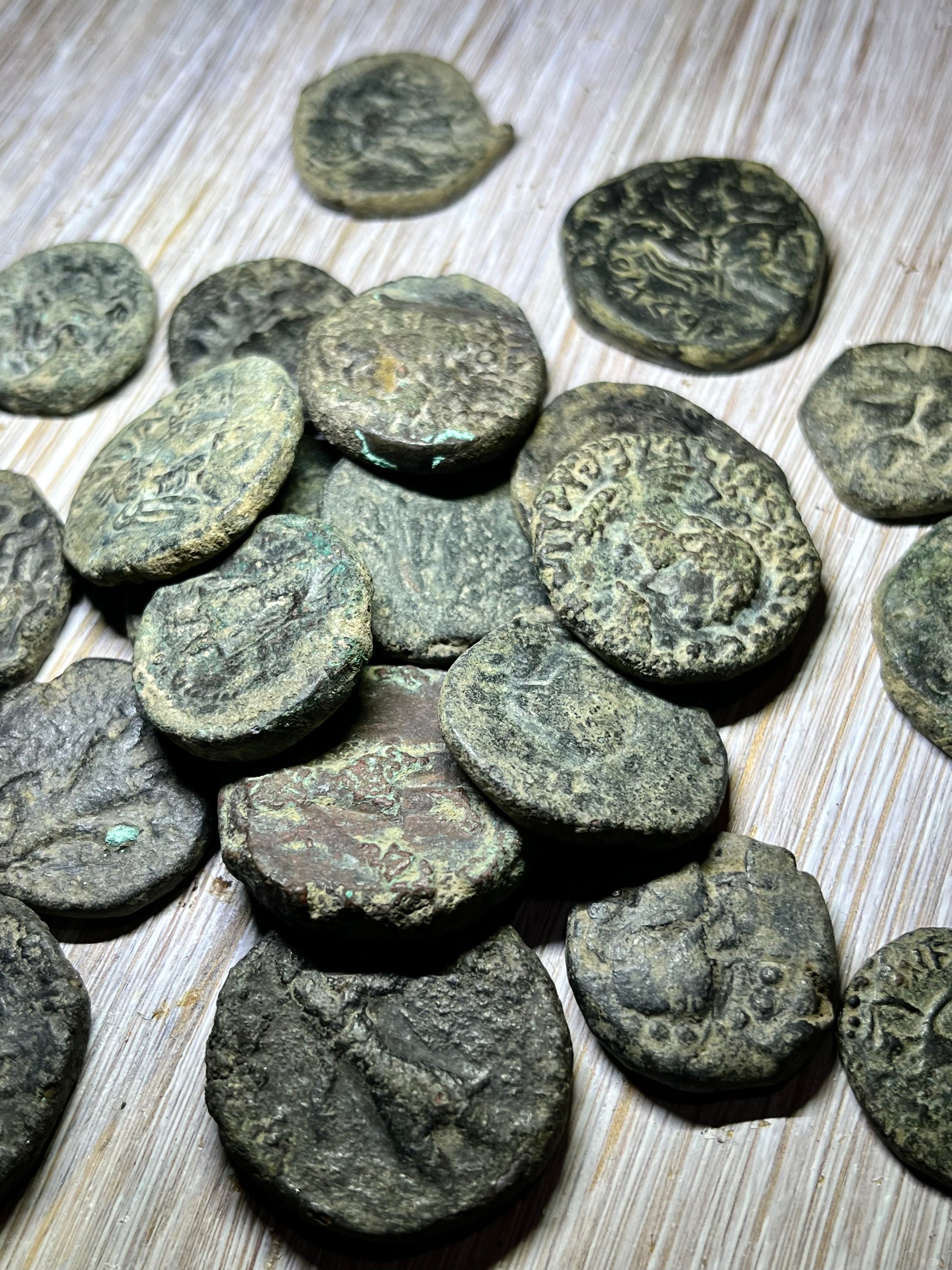 You will receive 1 random medium to large coin from this batch. These are a mixture of ancient Greek and Roman, approximately 2,000 years old! Sizes range from .5-1” each.