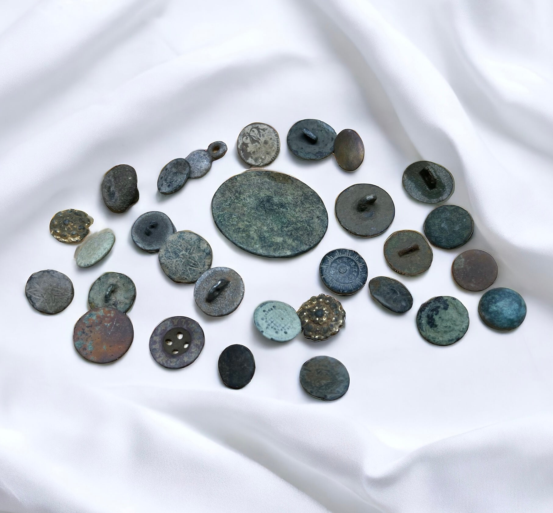 This is a collection of authentic medieval Spanish buttons from the Pirate and Conquistador era! Some of these still have beautiful, intricate designs on them.