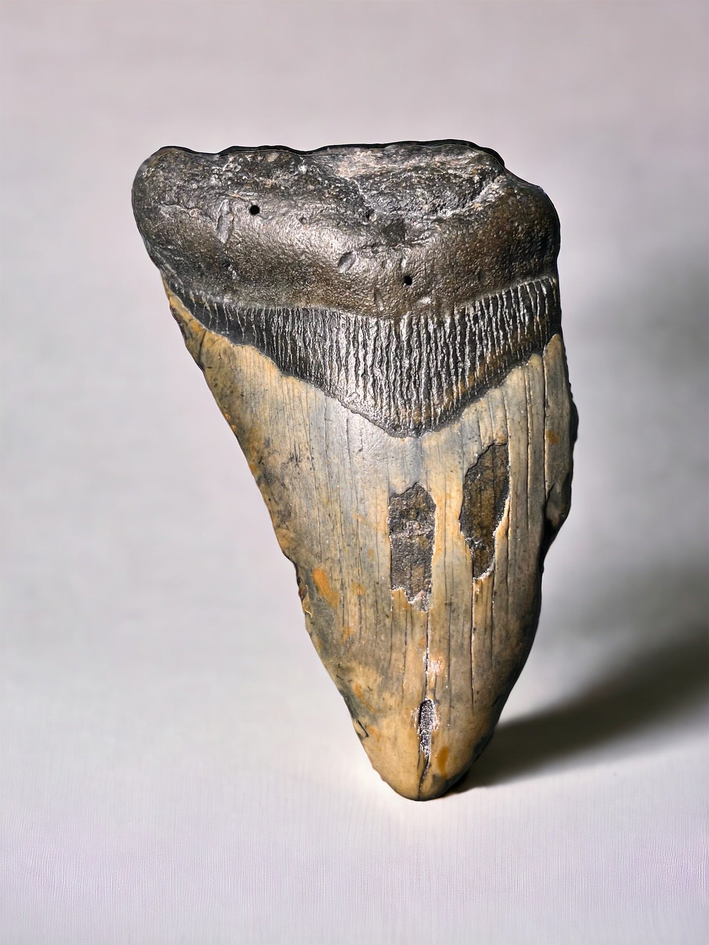 Megalodon teeth are the fossilized remains of the Megalodon shark, an extinct creature that inhabited the oceans approximately 2.6 million to 28 million years ago. These teeth, found in marine deposits worldwide, are highly coveted by collectors due to their impressive size and rarity. Growing up to 7 inches in length, these teeth are distinguished by their triangular shape and serrated edges, making them ideal for hunting and ripping through prey. Whether you are a scientist delving into shark evolution or a fossil enthusiast, owning a Megalodon tooth adds a unique and valuable piece to any collection.
