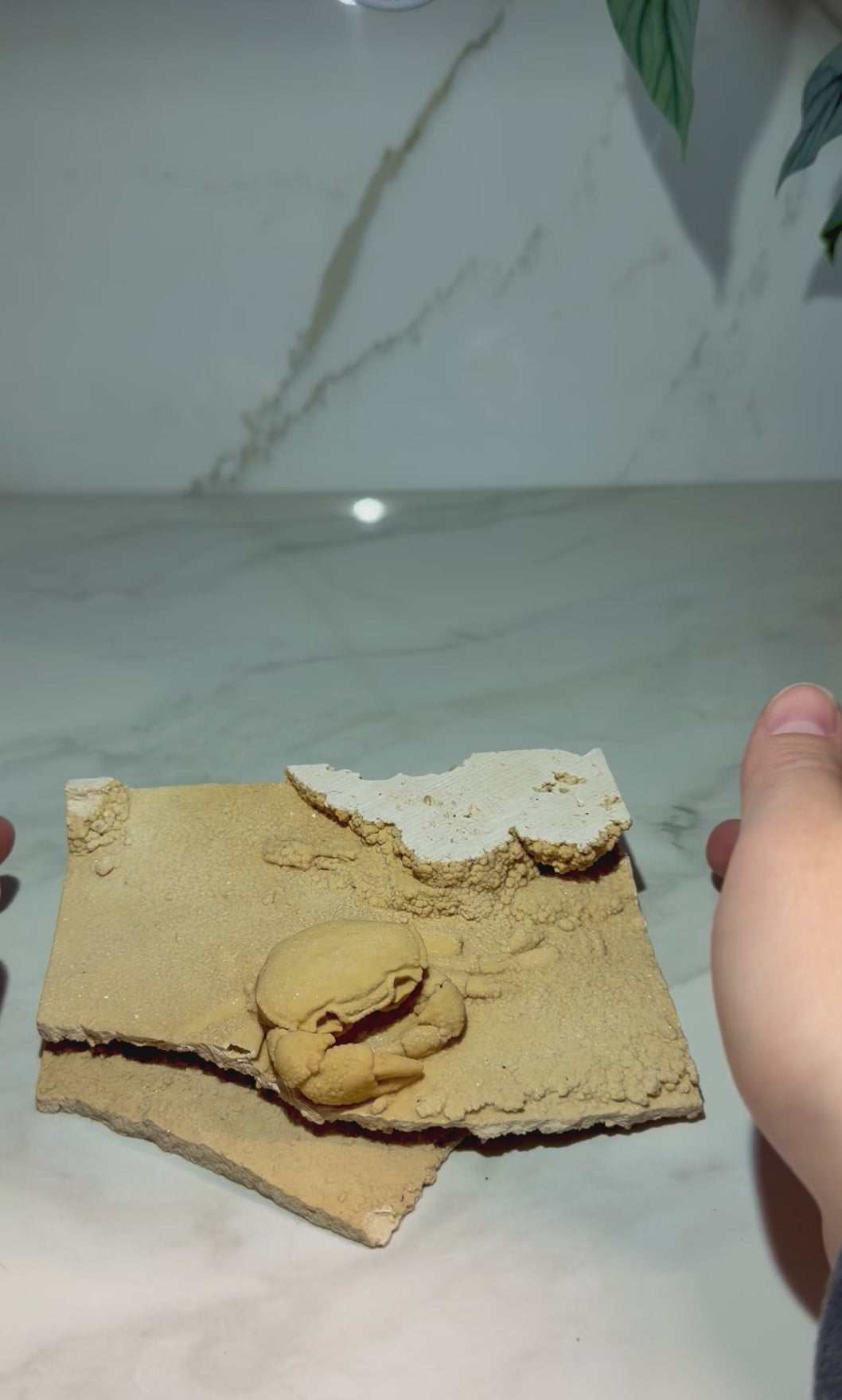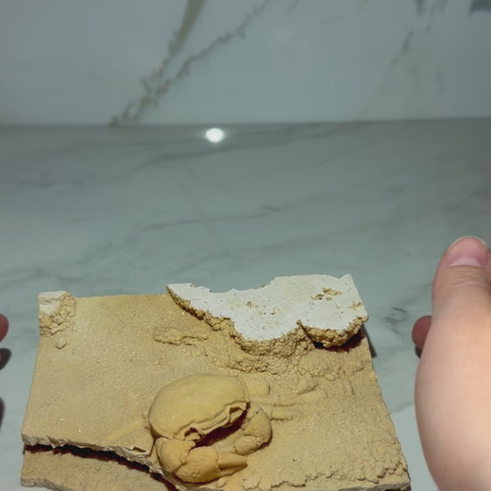Potamon is a genus of freshwater crab still living today around the eastern Mediterranean. These fossils come from Pleistocene era (approx 400,000 years old), formed in ancient spring and river-fed environments. This specimen captures a shockingly intact moment from that world, and yet today is still full of character!