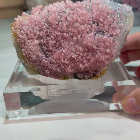 The color contrast and textural balance make this piece a quintessential example of Wutong’s famous mineral paragenesis, where manganese-rich solutions deposited rhodochrosite over a foundation of quartz and fluorite.