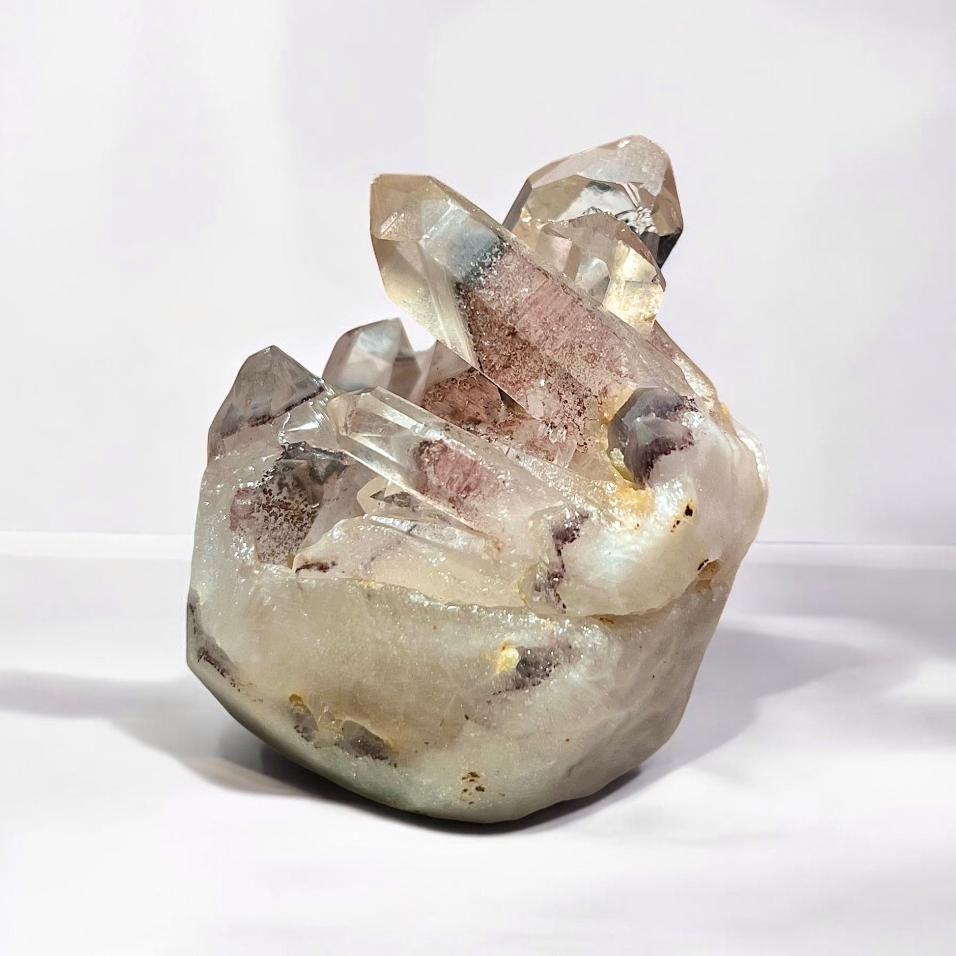 This cluster has uncommon grey/whiteish phantoms that can be seen above the red hematite phantoms.