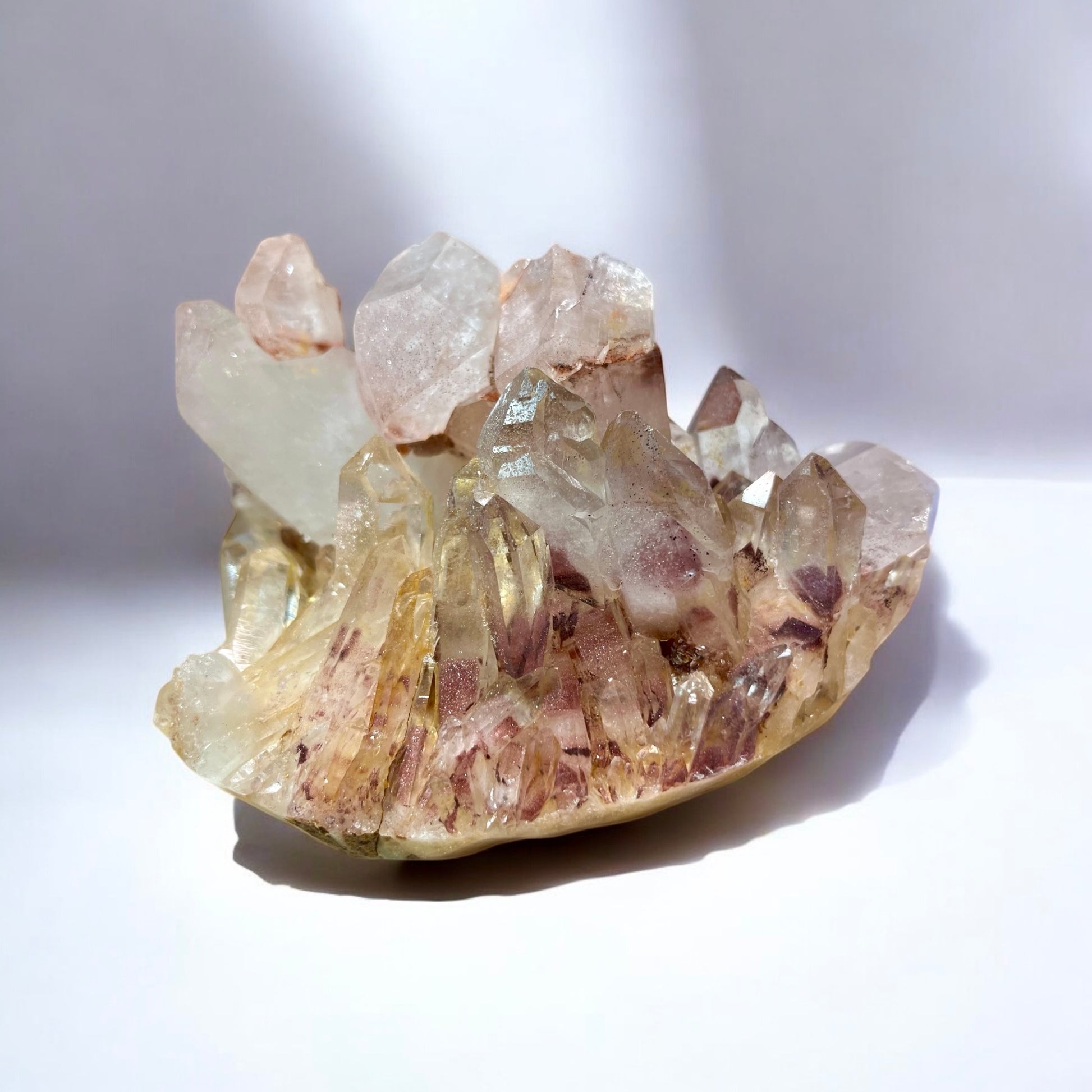 Known as “Sunset Phantom Quartz,” this rare gem can only be found in a single location on Earth. First discovered in 2022, it earns its evocative name from the striking purple-red hematite inclusions suspended within its crystal-clear points, creating a stunning visual effect. The yellow-hued matrix enhances the overall “sunset” aesthetic, making each piece a natural work of art.
