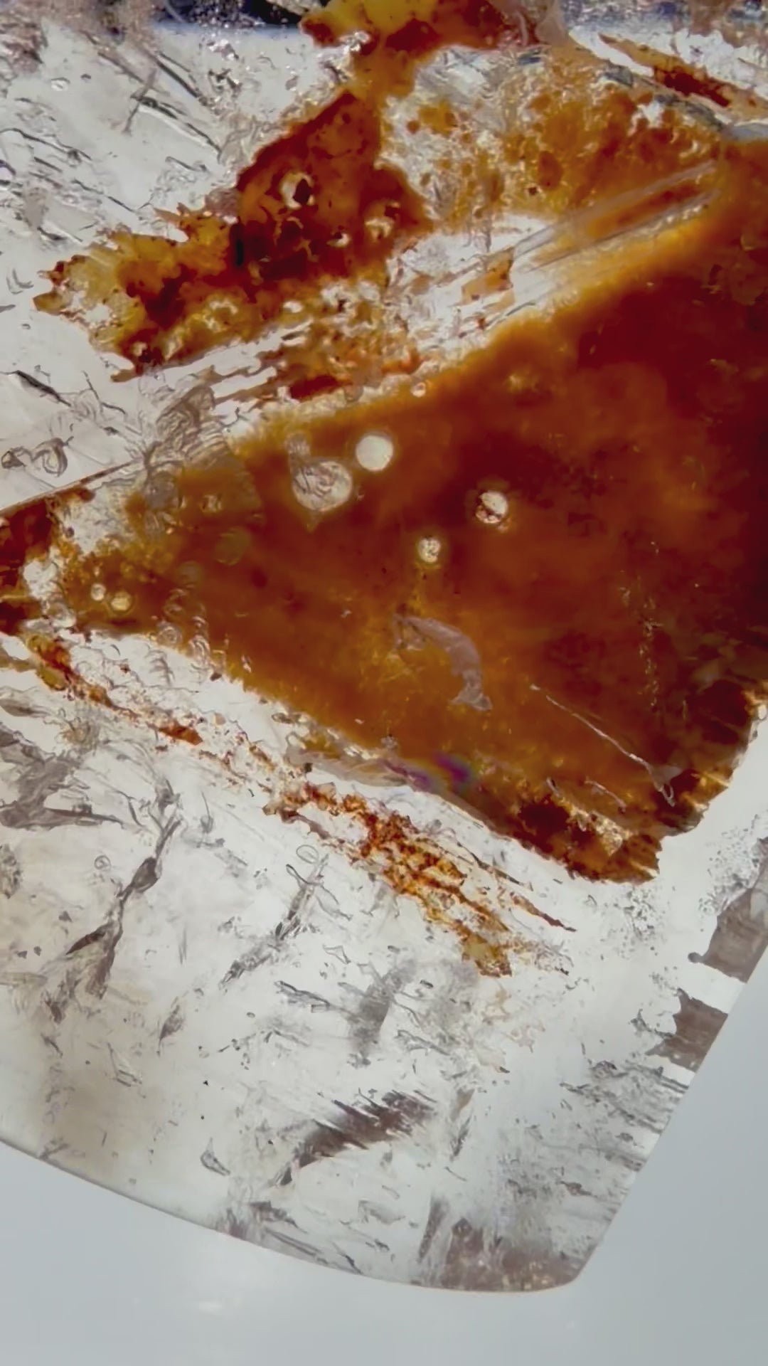 Enhydro quartz contains ancient trapped water and air bubbles, sealed within the crystal millions of years ago. These geological time capsules preserve pockets of Earth’s primordial fluid systems, sometimes along with sediment or hydrocarbon particulates. The result is a living display—movement and stillness coexisting inside quartz’s timeless clarity.